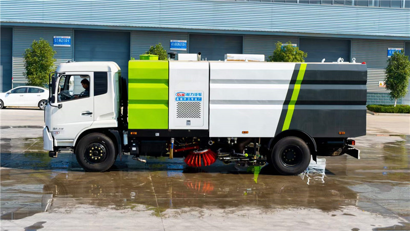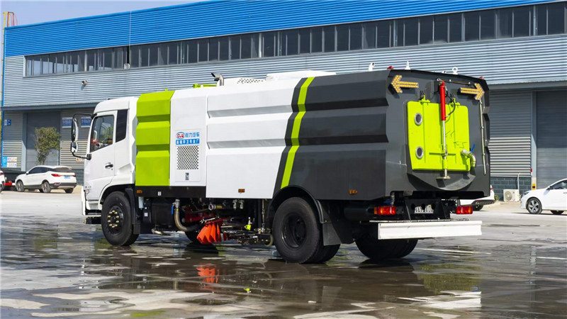 程力洗掃車廠家生產出一臺能洗、能沖、能掃的全能車型-東風天錦洗掃車。可稱之為路面清掃專家