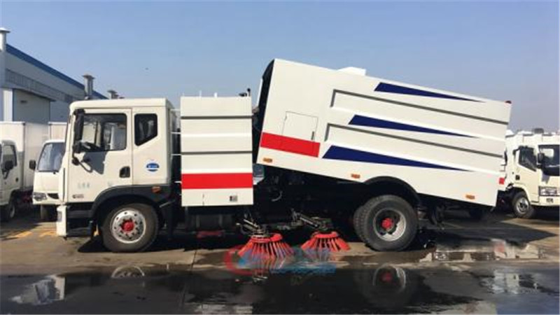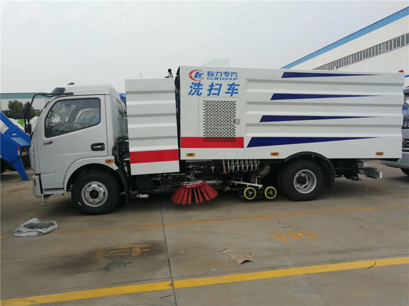 這款東風多利卡洗掃車可吸入粒度100mm,單排可以前翻駕駛室,發(fā)動機功率為115千瓦,156馬力發(fā)動機,東風洗掃車采用萬里揚6檔變速箱,東風邦樂5.5噸后橋,8.25R16鋼絲胎,帶動力轉向,氣制動,ABS,駱駝電瓶,可選裝空調(diào)。 中置兩掃盤,中置寬吸嘴,吸盤內(nèi)置高壓噴桿,副發(fā)動機為康機140馬力發(fā)動機,清洗寬度3.5米,高壓沖洗高度≥21米,水罐容積4噸,垃圾箱容積5噸,最大清掃能力7萬平方米/小時。